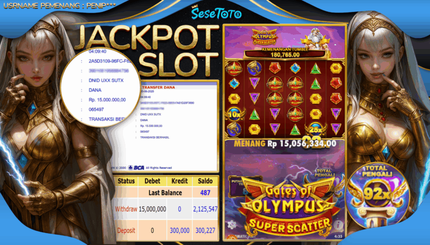JACKPOT GATE OF OLYMPUSH SUPER SCATTER Rp 15.000.000