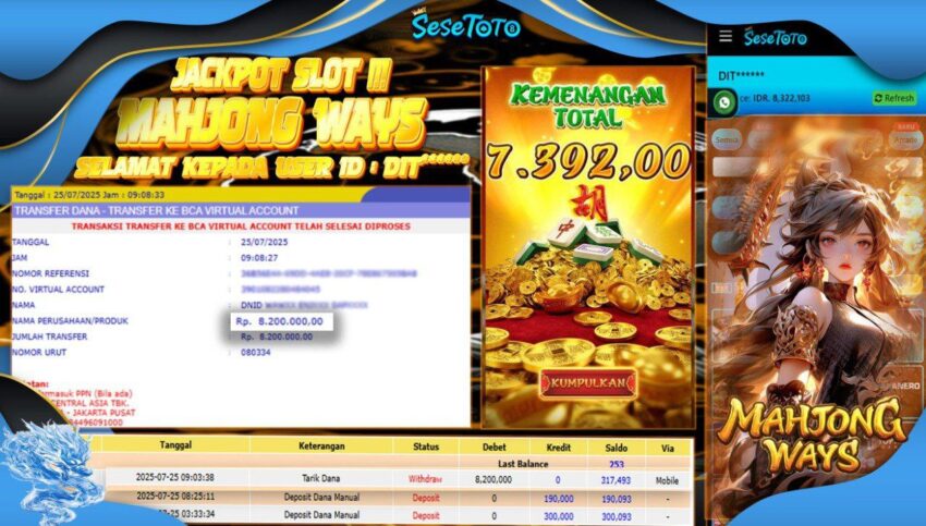 Selamat kepada User id : DISASTRE*** SESETOTO SLOT MAHJONG WAYS RP 7.300.000 SABTU, 25 JULY 2025 Selamat kepada User id : DIT*** Telah berhasil mendapatkan kemenangan besar pada permainan SLOT MAHJONG WAYS kemenangan Sebesar Rp 7,300.000, Setelah mengisi formulir withdraw dengan kurung waktu hanya 5 – 10 menit pihak SESETOTO sudah melakukan transfer kepada pemilik User id dan dana sudah dapat di cairkan oleh pemenang. Bukti pembayaran yang kami berikan merupakan bukti pembayaran yang SAH / VALID. Ayo segera daftarkan diri anda pada situs terpercaya kami hanya di SESETOTO. Untuk info pendaftaran lebih lanjut boleh hubungi kontak dibawah ini :Telegram: @agensesetoto